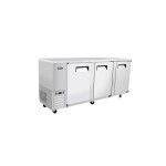 72" Stainless Steel Counter Height 3 Solid Door Back Bar Refrigerator with LED Lighting